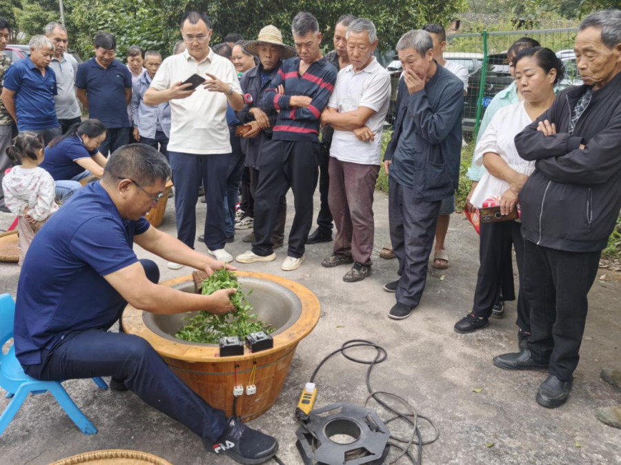 为提升茶叶从业人员专业技能,助力黔江区茶产业实现提质增效与品牌升级,9月28日至29日,市人社局第六批专家服务团领衔专家、市农技总站高级农艺师贺鼎带队,赴黔江区中塘镇双石村开展茶叶技术专题培训。本次培训特别邀请重庆市农业科学院茶叶研究所副所长钟应富研究员、袁林颖研究员等行业专家授课指导,黔江区特色经济作物技术推广站站长李正文、重庆旅游职业学院翁天均教授、黔江区中塘镇特色产业服务中心主任殷蜀锦、双石村支部书记向国永,及当地茶叶种植大户、茶农代表共计50余人参会。